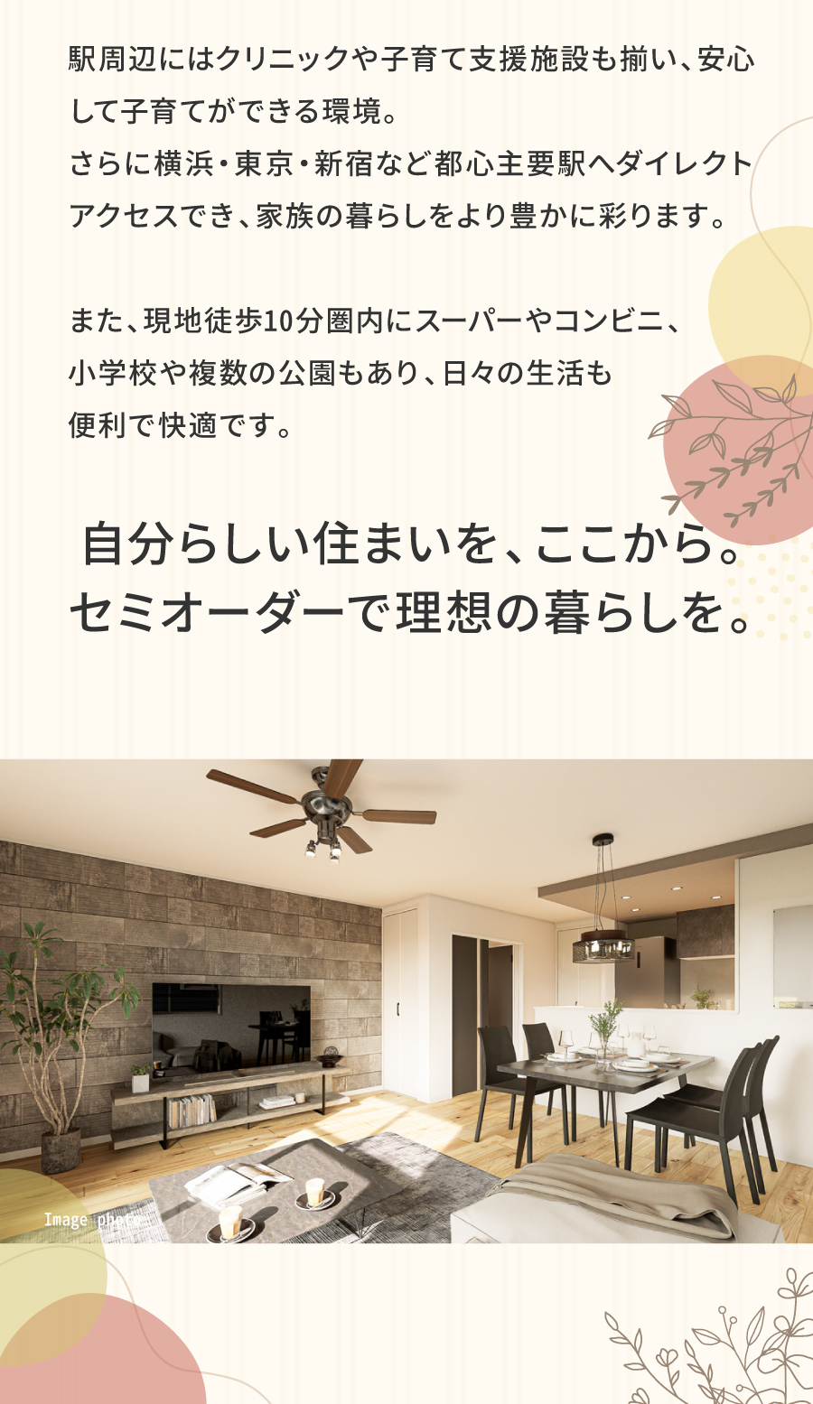静かな住宅街の落ち着きと東戸塚駅前の賑わいがバランスよく共存するエリア。駅徒歩圏で生活便利、豊かな自然に囲まれる安心して暮らせる街です。