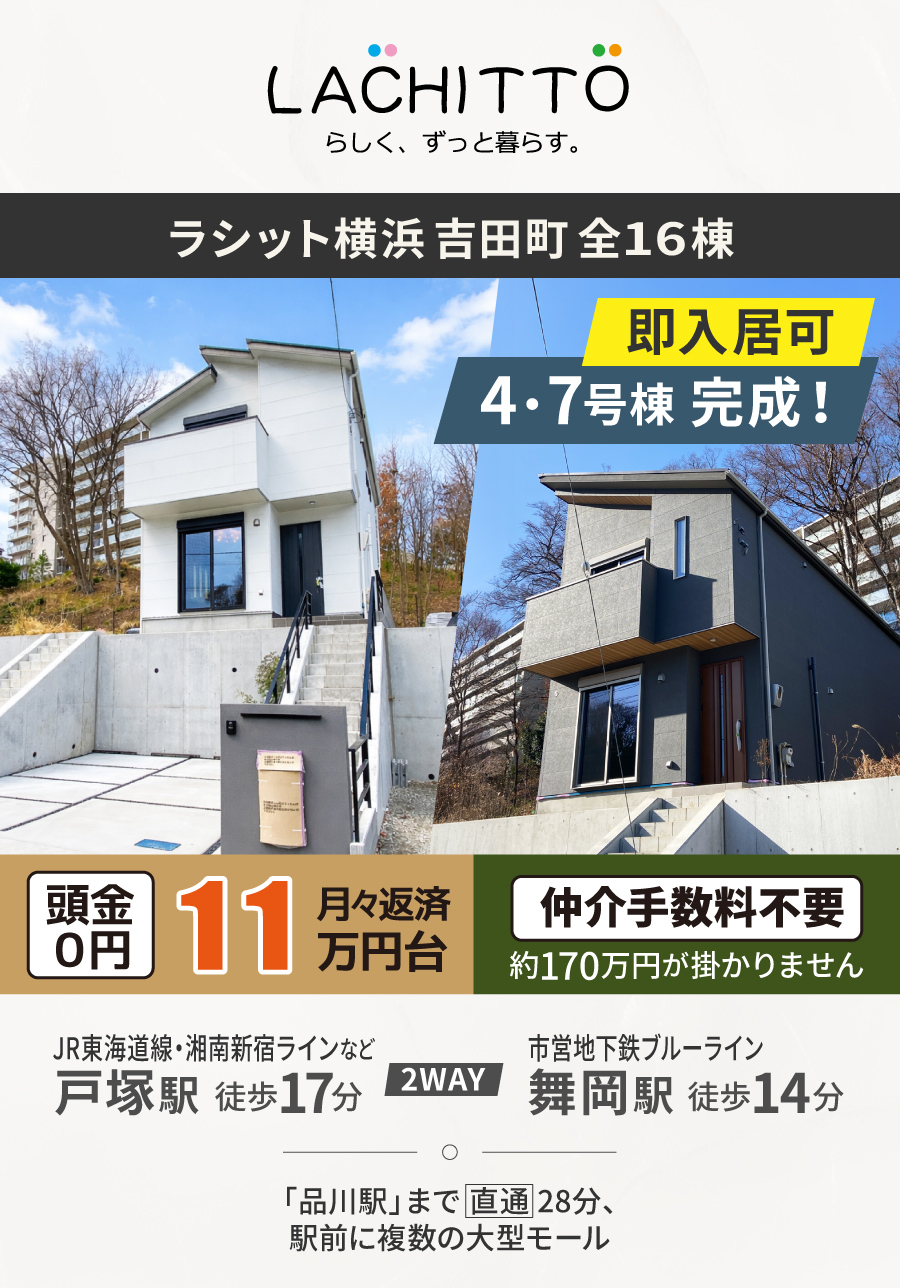 吉田町はターミナル駅「戸塚」徒歩圏にありながら、緑豊かな落ち着いた雰囲気の住宅地で、その利便性からファミリー層やシニア層にも人気の街。