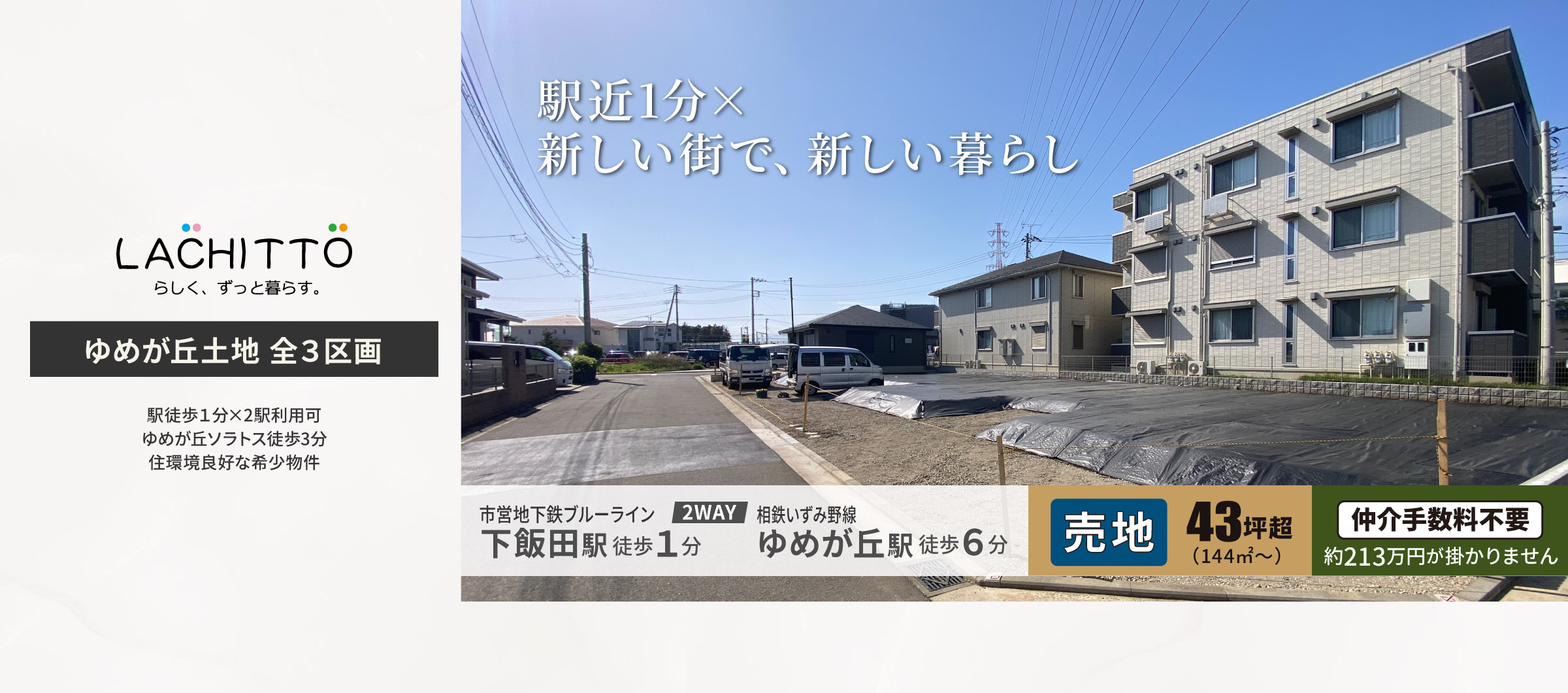 横浜市営地下鉄ブルーライン「下飯田駅」徒歩1分、相鉄いずみ野線「ゆめが丘駅」徒歩6分。2駅利用が可能な、利便性に優れた立地です。