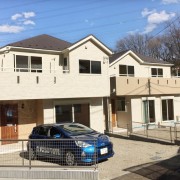 閑静な住宅地の中に完成した『ラシット横浜 こどもの国 全1棟』の現地に到着しました。ゆとりの敷地で車2台駐車も可能です。交通量の少ない公道に面したやすらぎの感じられるエリアです。