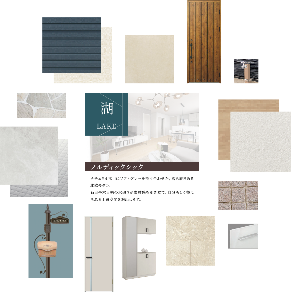 ナチュラル木目にソフトグレーを掛け合わせた、落ち着きある北欧モダン。 石目柄の水廻りが素材感を引き立て、自分らしく整えられる上質空間を演出します。明るい南庭が広がるリビングで、家族の時間をのびのびと。