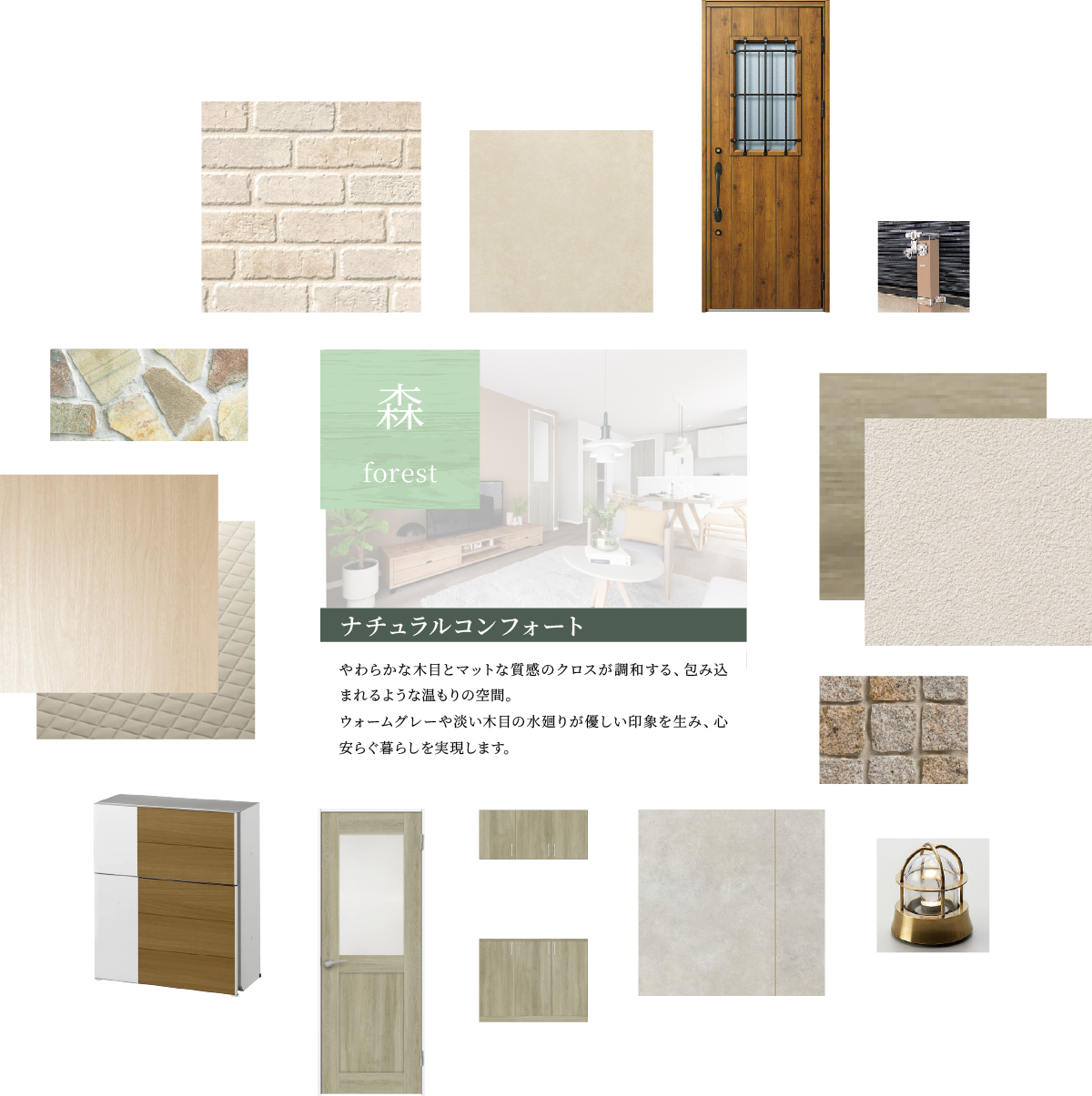 ウォームグレーや淡い木目の水廻りが優しい印象を生み、心安らぐ暮らしを実現します。