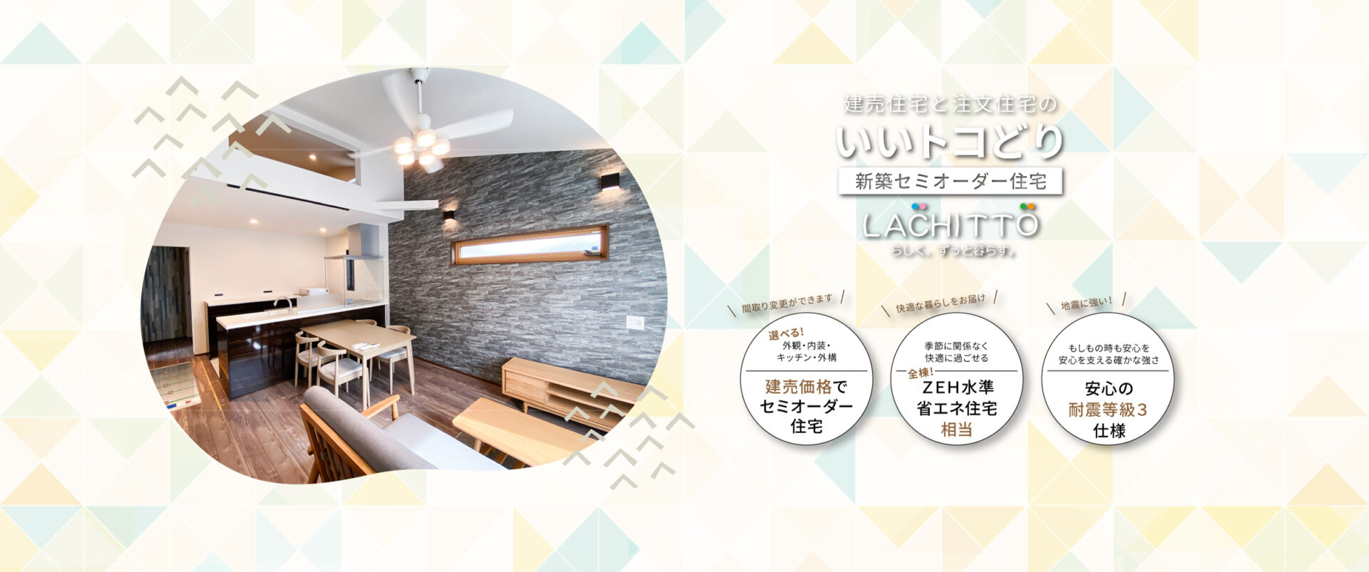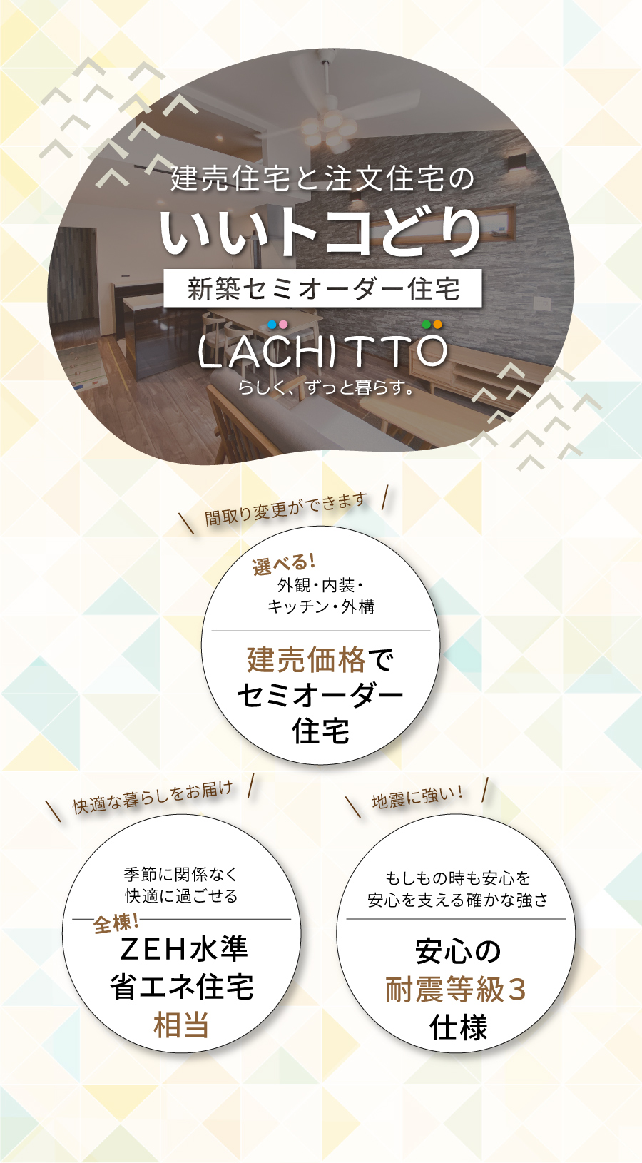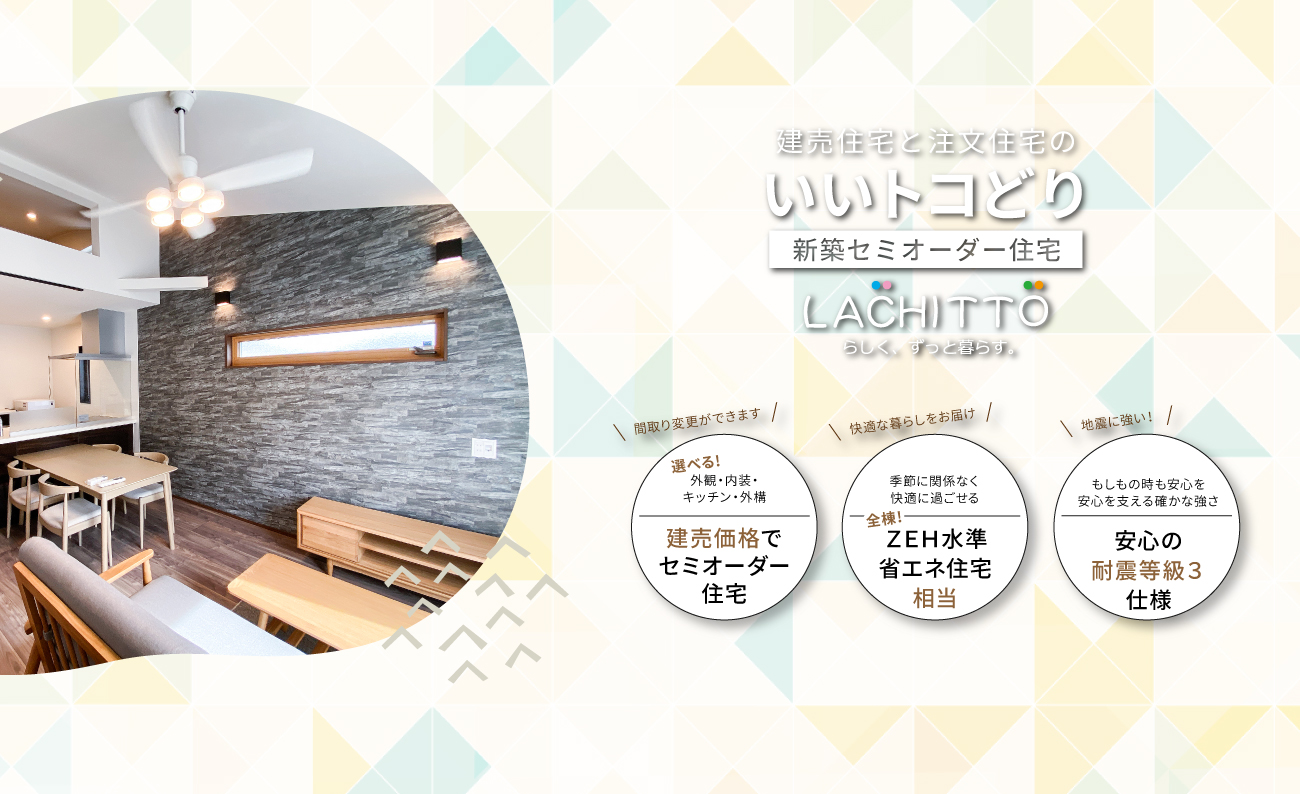 基本の間取りプランをベースに外観・内装・キッチンなどの水回り・外構などお好みのスタイルをセレクトできます。