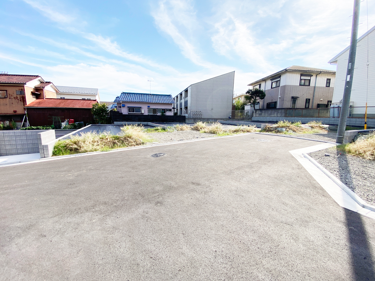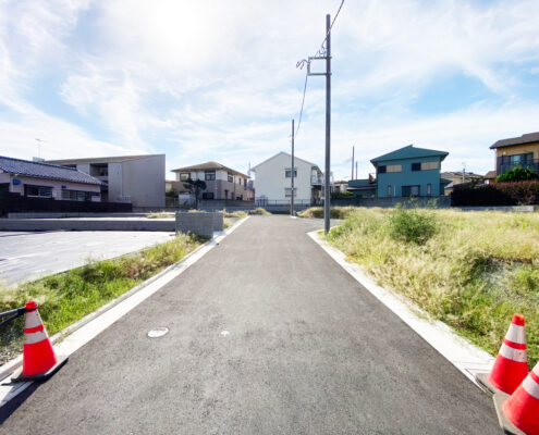 閑静な住宅街に位置し、車通りも少なく静かで落ち着いた環境。新設道路の先は通り抜けできないため、住む方々のプライベートがしっかり守られます。