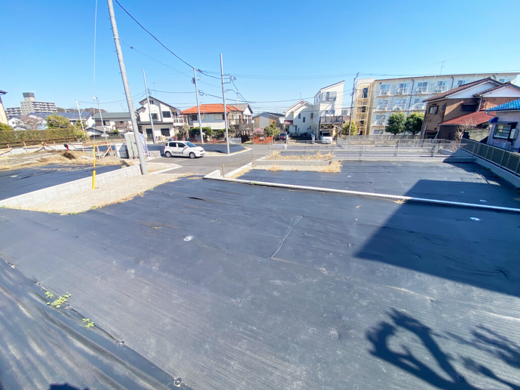 最終1区画・No.5。新設道路の一番奥に位置し、車通りも少ない落ち着いた住環境。新設道路の先は通り抜けできないため、居住者以外の出入りが少なく、プライベート性の高い区画です。