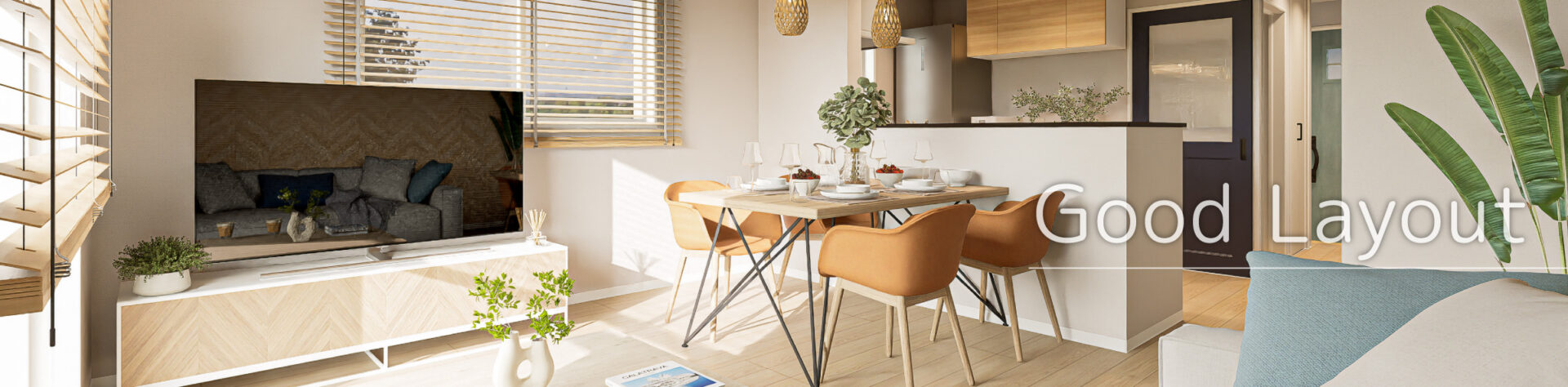 全居室に収納を備え、玄関にはシューズインクローゼット、洗面室にはリネン棚、キッチンにはパントリー、使い勝手色々のフリールームなど、毎日の快適さを支える工夫も詰まっています。