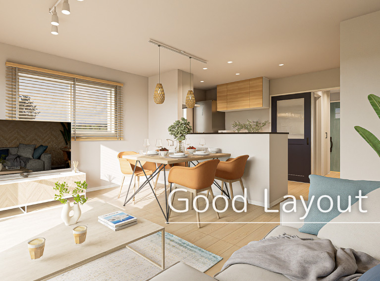 家族が集うくつろぎのLDKは、南庭をのぞむ15帖の開放的な空間。やさしい光と緑に包まれた心地よい時間が流れます。
