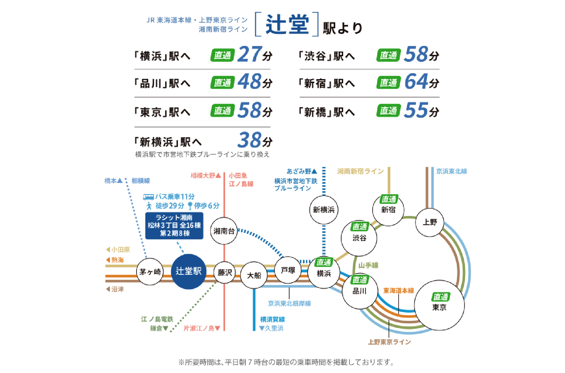 JR辻堂駅・茅ヶ崎駅両方使える2Way。都心主要駅へダイレクトアクセスで便利。