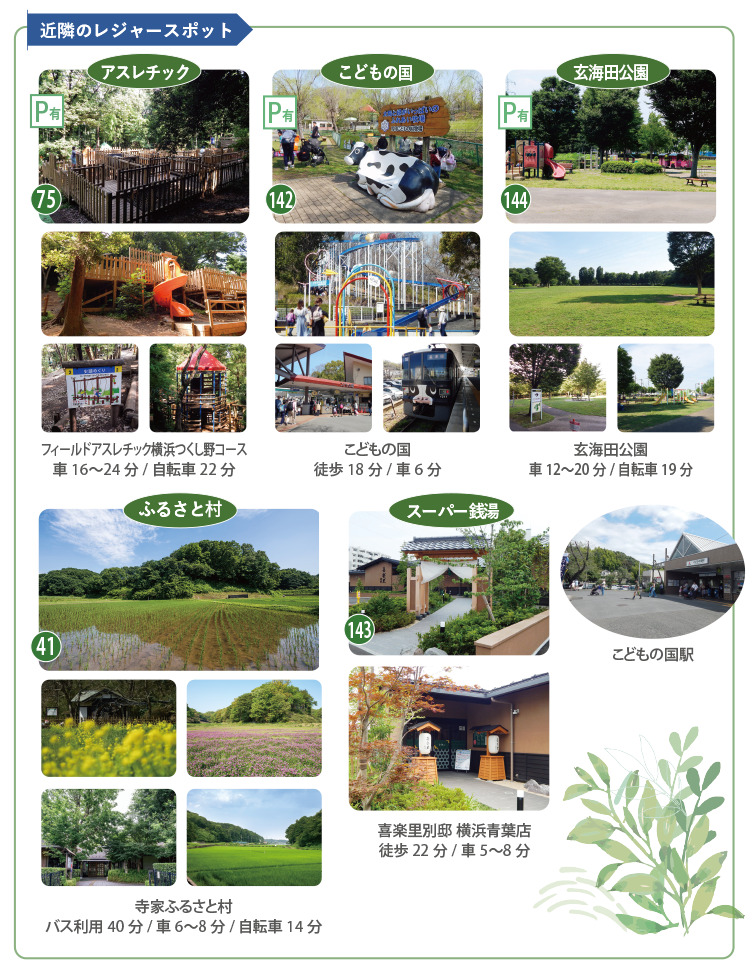 すみよし台は、横浜市の中でも自然が多く残り、落ち着いた住宅街として子育て世代に人気のエリアです。こどもの国や徒歩1分のすみよし台第三公園をはじめ、近所に遊具公園が多数あり徒歩圏に遊び場が充実しています。東急電鉄こどもの国線の“うしでんしゃ・ひつじでんしゃ”が走るのどかな風景も魅力です。恩田小学校・奈良中学校まで徒歩9分と通学も安心。家族の暮らしに寄り添う戸建て住宅の新しい選択肢としても注目されています。