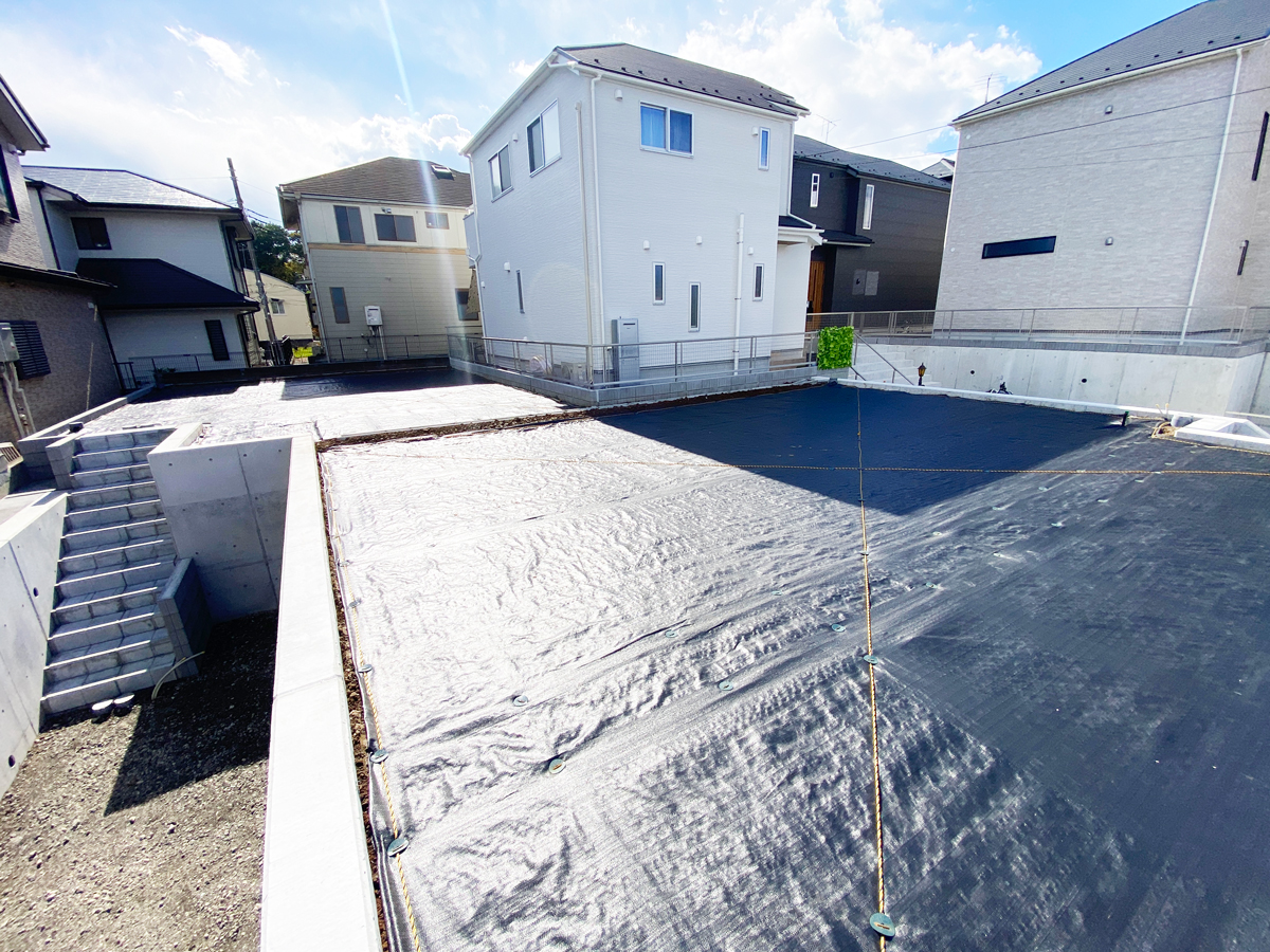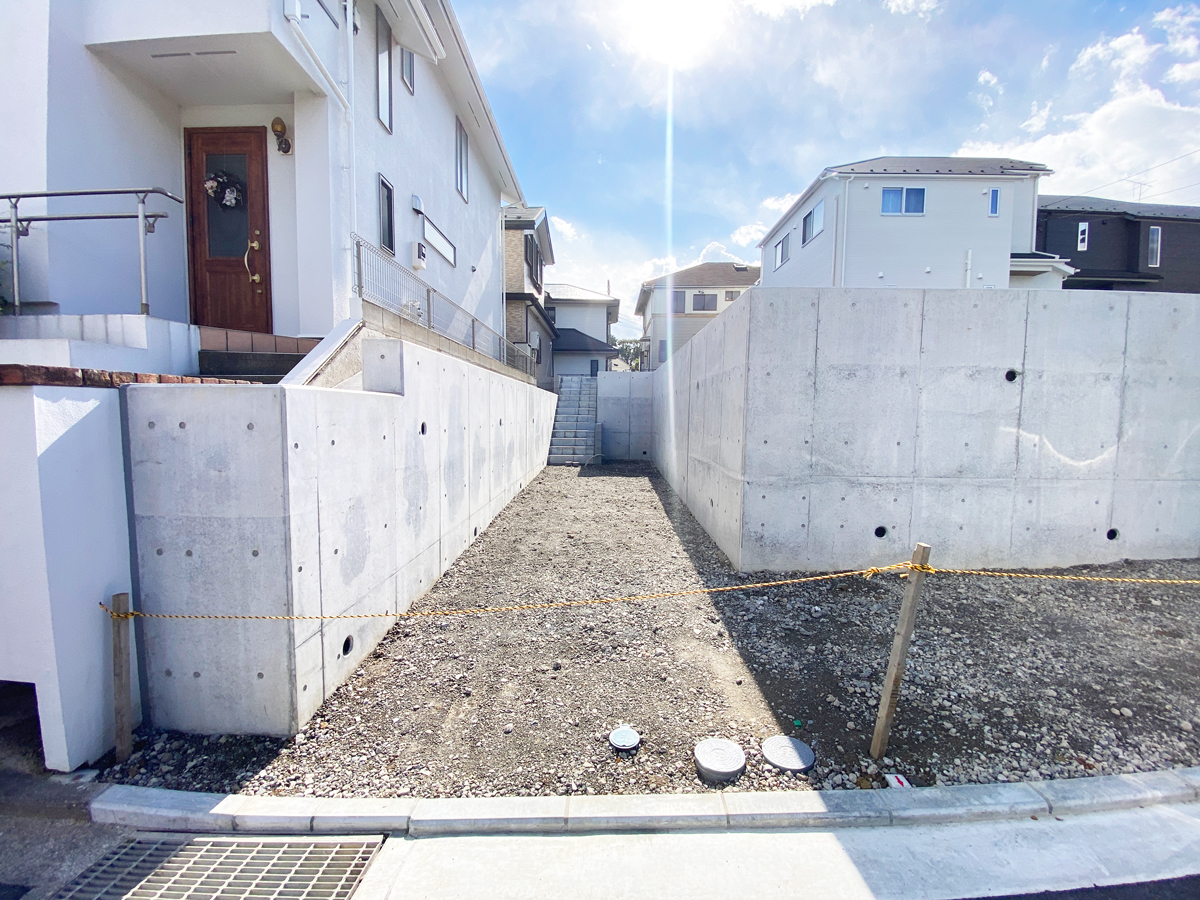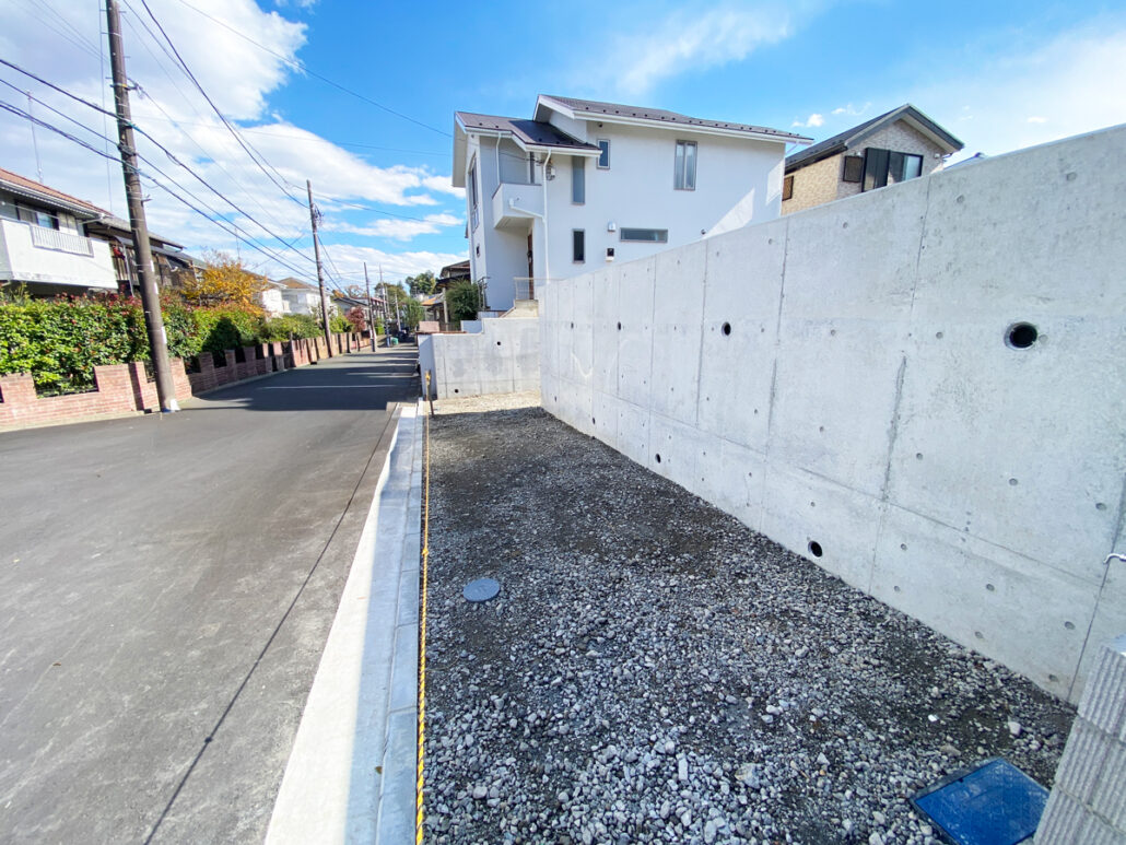 道路より一段上がった敷地は、防犯面やプライバシー性にも優れており、前後に並ぶ2区画のうち、奥の区画はカースペース2台分を確保しています。