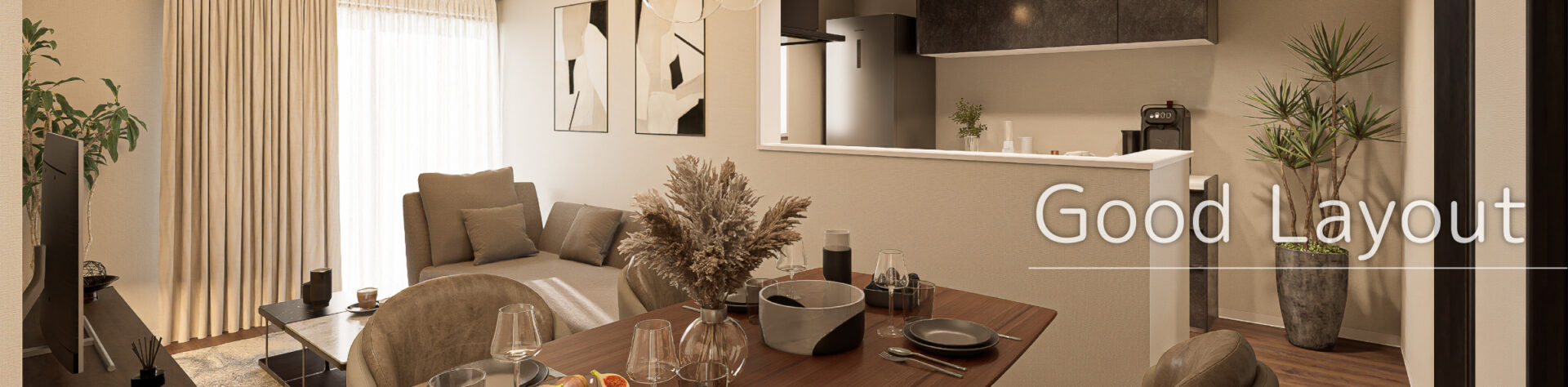 家族が集うくつろぎのLDKは、陽光あふれる南庭を望み、やさしい光と緑に包まれた心地よい時間が流れます。
