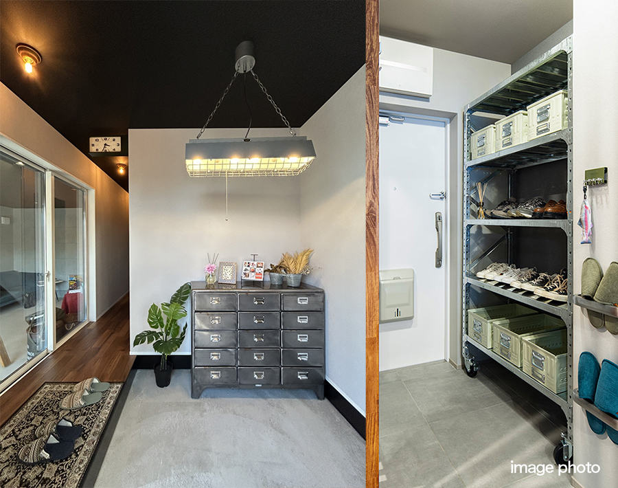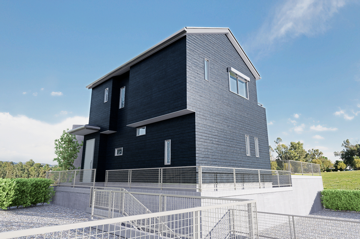 ネイビーの深みとメタルカラーのシャープさが絶妙に調和した外観。静かに個性を主張する、上質な雰囲気を纏ったダルトン仕様の一邸。※一部仕様は実際のものと異なります。