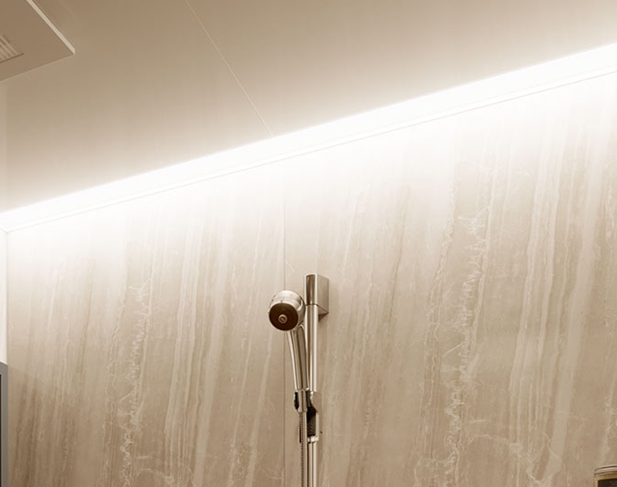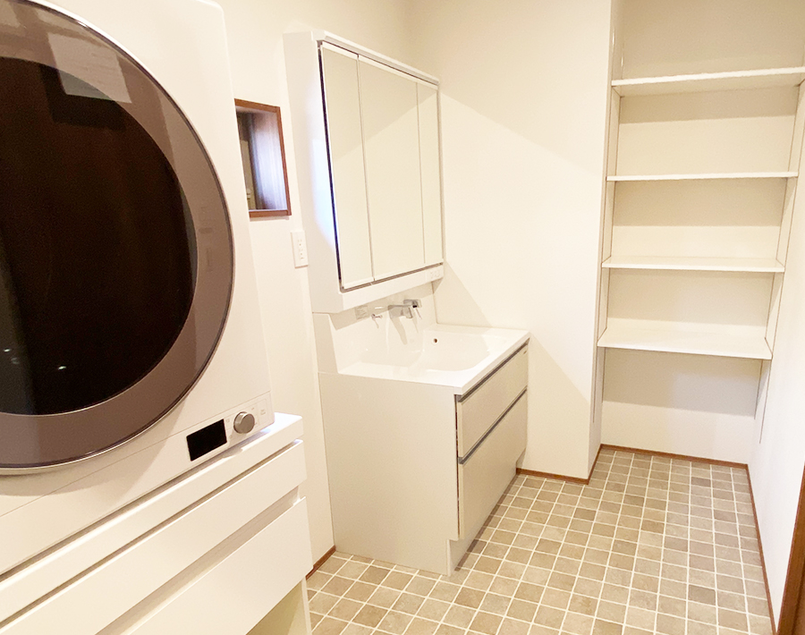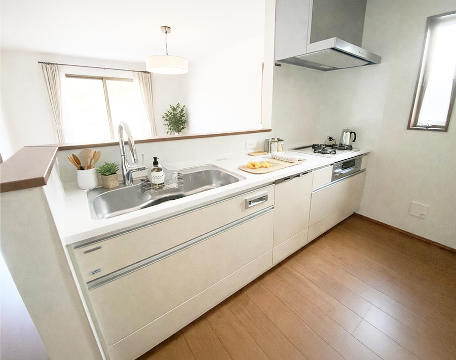 キッチンには背面収納が付き、吊戸棚あり・無しタイプが選べ、お好みに合わせた空間づくりが可能です。