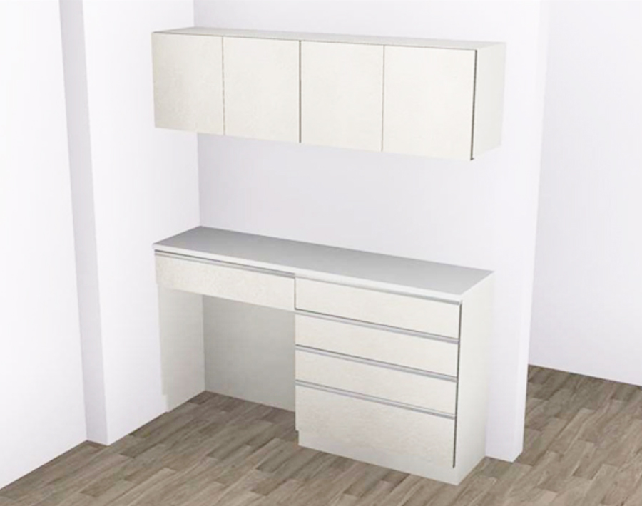 キッチンには背面収納が付き、吊戸棚あり・無しタイプが選べ、